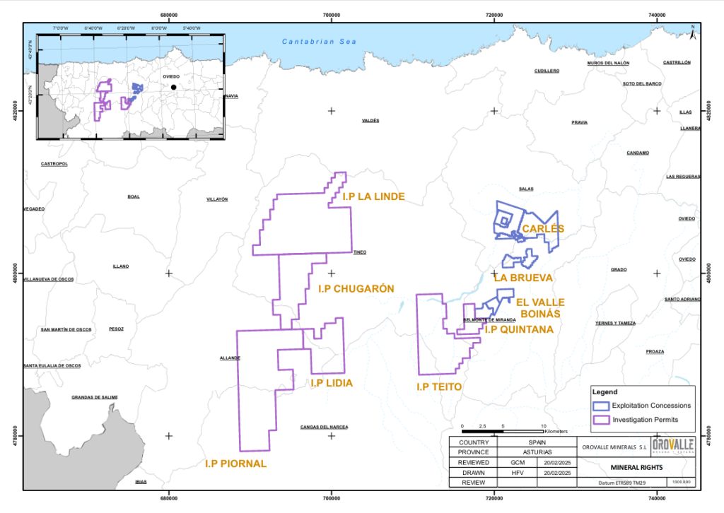 Más allá de la actividad extractiva y de procesamiento de mineral, Orovalle desarrolla un continuo trabajo de investigación geológica en los tres cinturones auríferos de Asturias en busca de nuevos recursos minerales que puedan garantizar el futuro de la operación. Por ello posee en el Principado de Asturias 30.779 hectáreas entre Concesiones de Explotación y Permisos de Investigación.